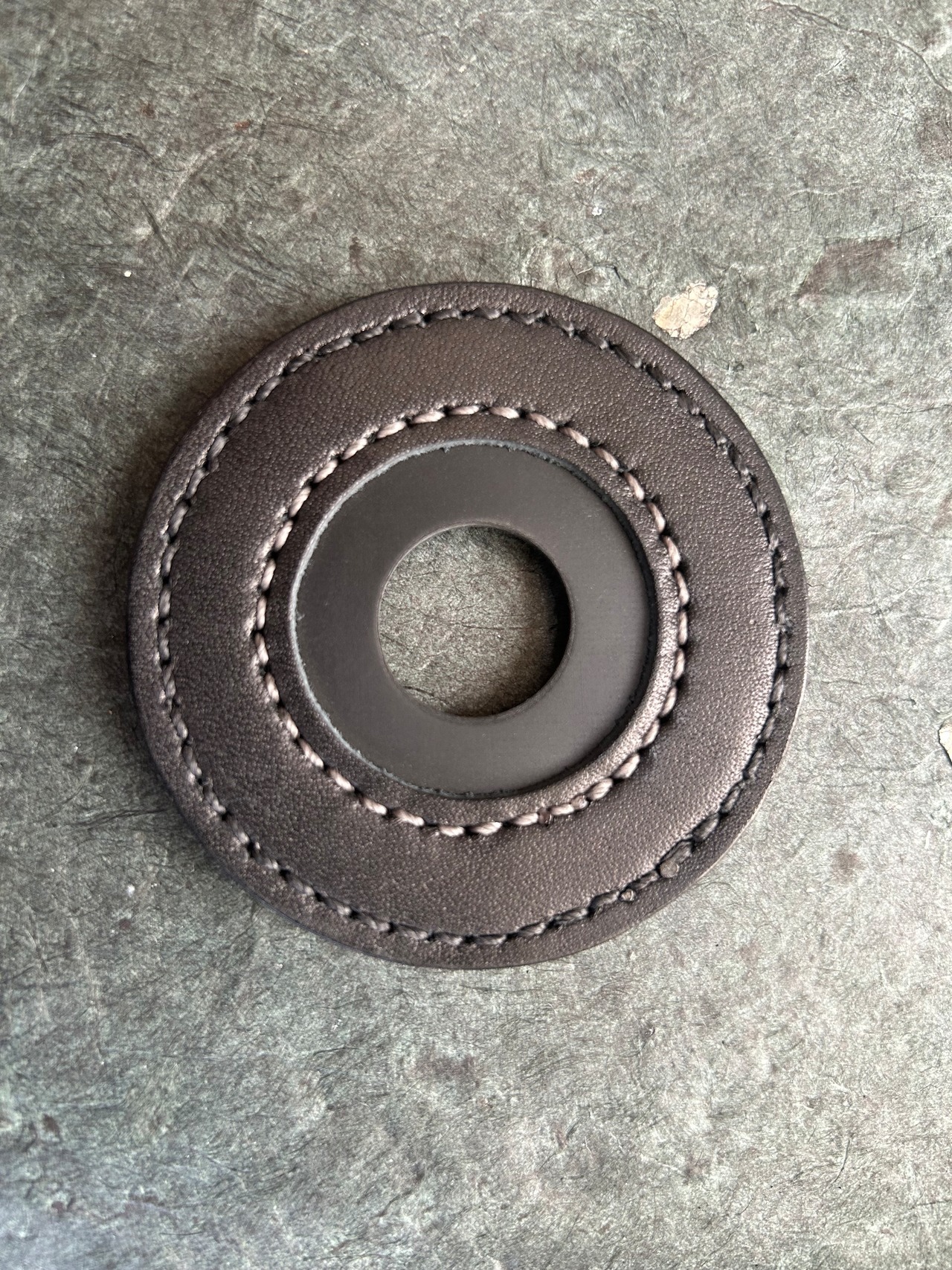 その個性を活かしながら、革職人が丹念に仕上げた、存在感のある希少な鍔止めです。
