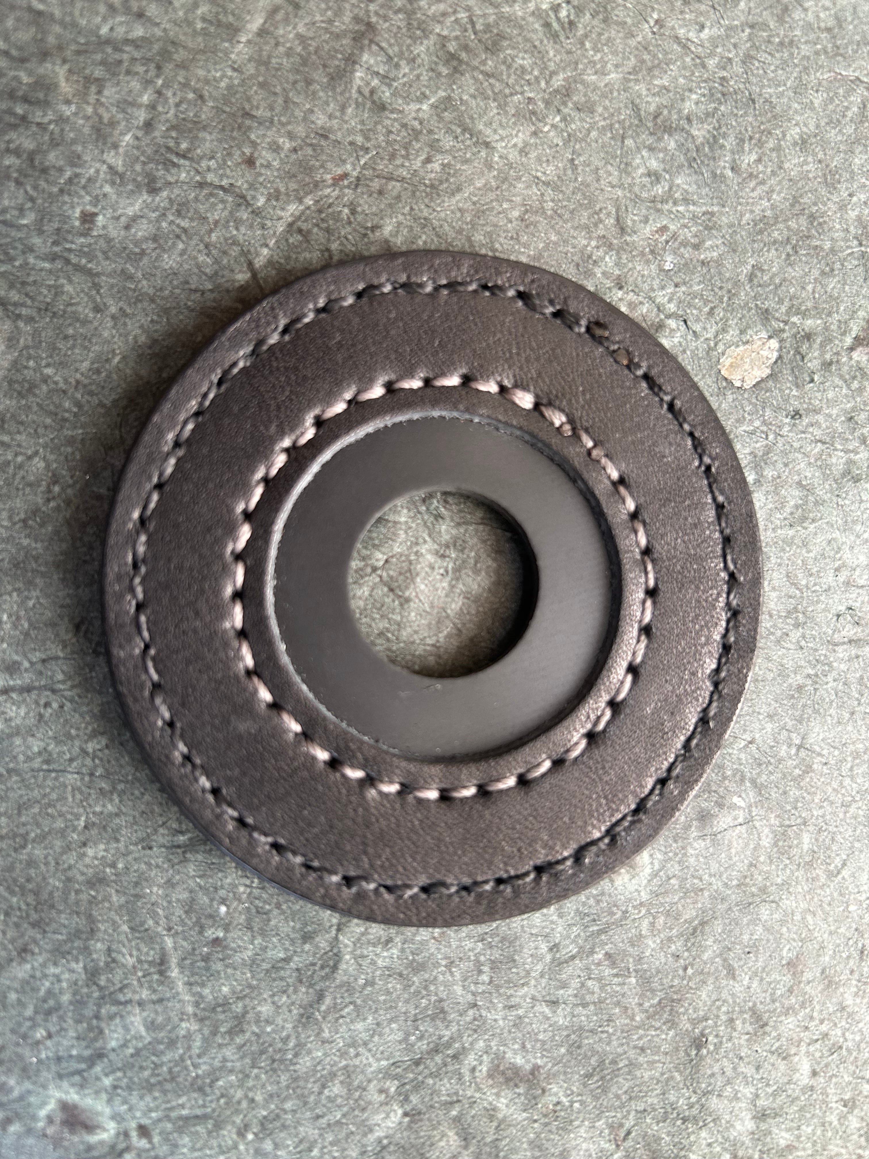 その個性を活かしながら、革職人が丹念に仕上げた、存在感のある希少な鍔止めです。
